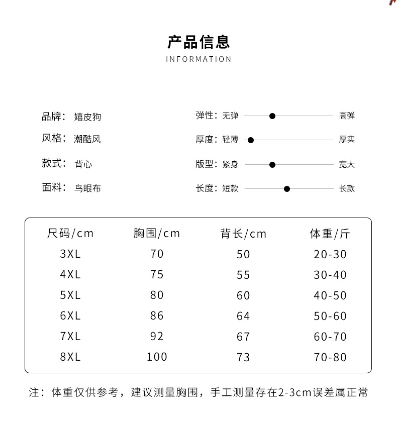 size: 3XL (recommended weight 20-30 catties),4XL (recommended weight 30-40 catties),5XL (recommended weight 40-50 catties),6XL (recommended weight 50-60 catties),7xl (recommended weight 60-70 catties),8XL (recommended weight 70-80)